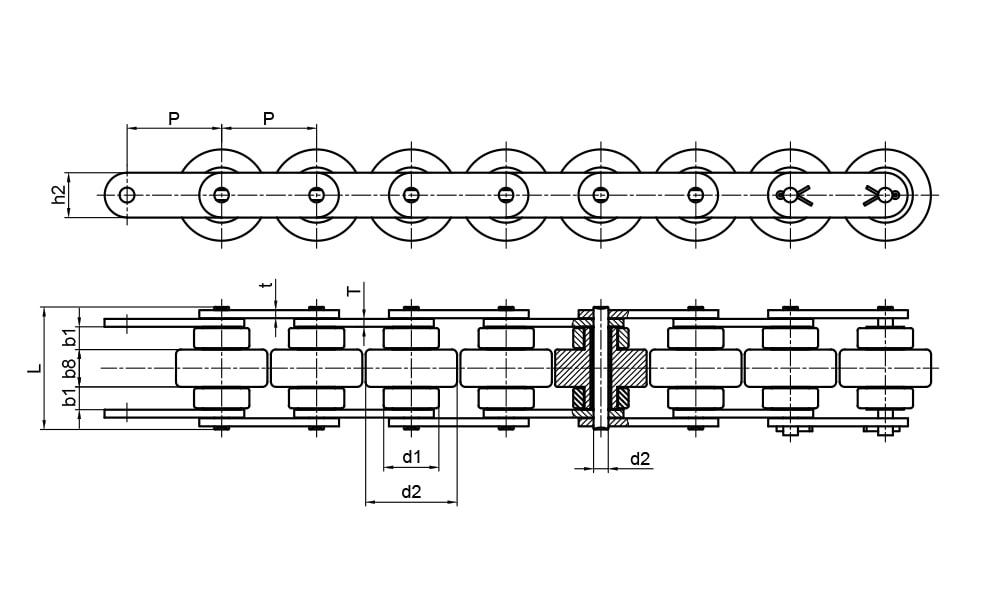 | P | d1 | d8 | d2 | L | h2 | T/t | Q | |