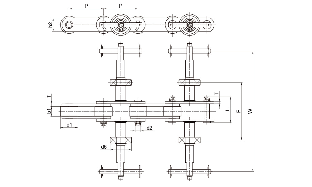 | 链号 | 节距 | 滚子尺寸 | 内节内宽 | 销轴直径 | 销轴长度 | 链板高度 | 附板尺寸 | 抗拉强度 |